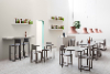 Cortado Sandalye'nin sofistike "Beyaztaş Serisi" iç mekan mobilyaları ile işletmenize veya evinize çağdaş bir dokunuş katın! Görseldeki açık gri masa tablaları ve koyu ahşap tonlarındaki zarif sandalyeler/tabureler, modern minimalist estetiği benimseyenler için idealdir. Şıklığı ve fonksiyonelliği bir araya getiren bu seri, kafe, restoran, bar veya ofis gibi yoğun kullanılan iç mekanlar için mükemmel bir çözümdür.