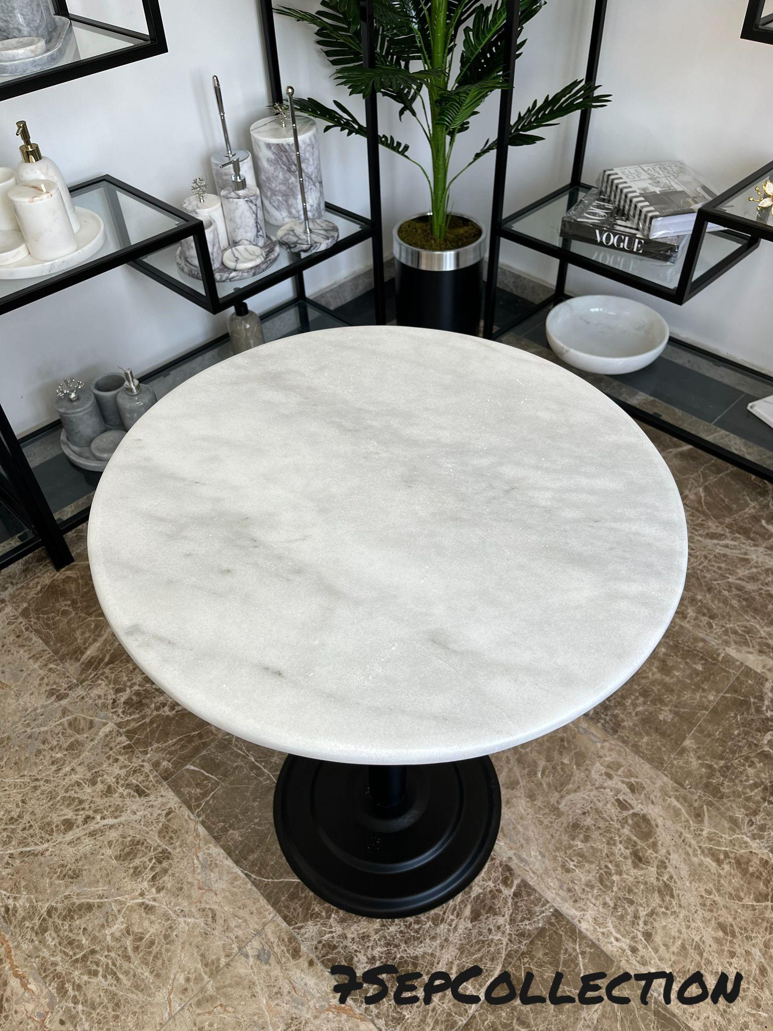 Malzeme: %100 doğal mermer üst tabla, metal veya ahşap ayak seçenekleri
