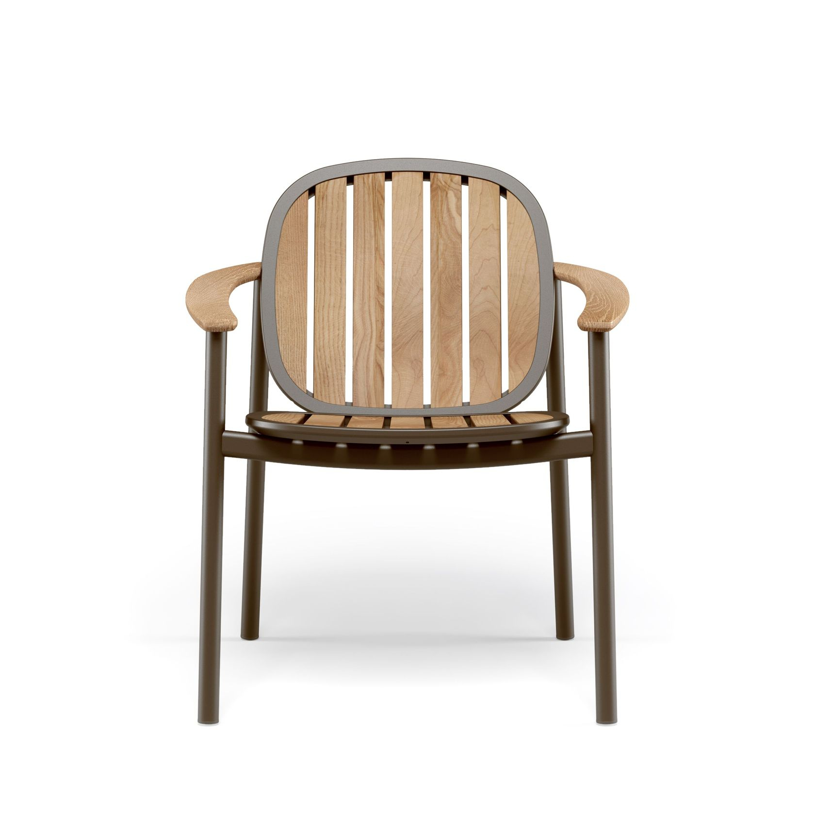 Modern çizgilerle tasarlanmış bu sandalye, sağlam alüminyum gövdesi, doğal ahşap kolçak ve sırt detaylarıyla hem estetik hem de dayanıklıdır.
